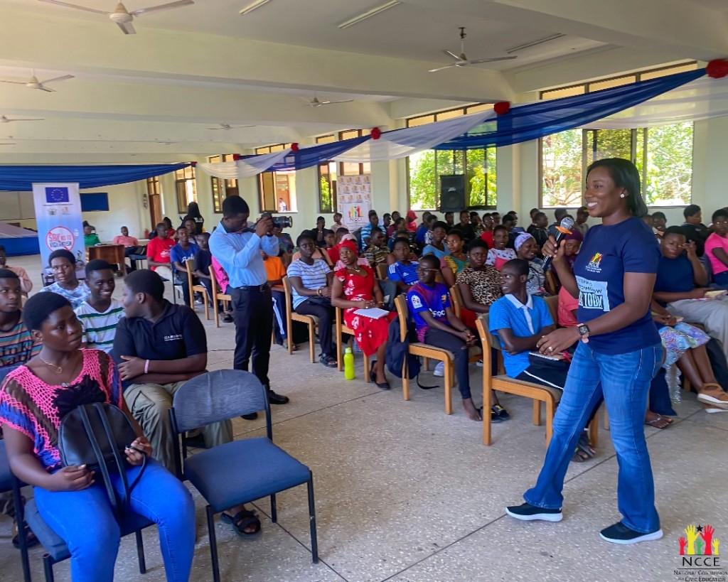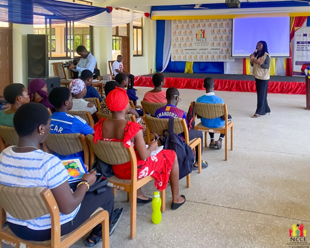As part of the Women and Youth in Democracy (WYDE) engagements, which is powered by the NCCE and the European Partnership for Development, a civic education session was held at Methodist University for tertiary students. The Director of Communications and Corporate Affairs at the NCCE, Ms. Rita Amparbin, cautioned students against blindly forwarding information or content they receive on social media. She emphasised the dangers of misinformation and disinformation, urging participants to verify information before sharing to prevent the spread of false narratives, especially in politically sensitive periods.