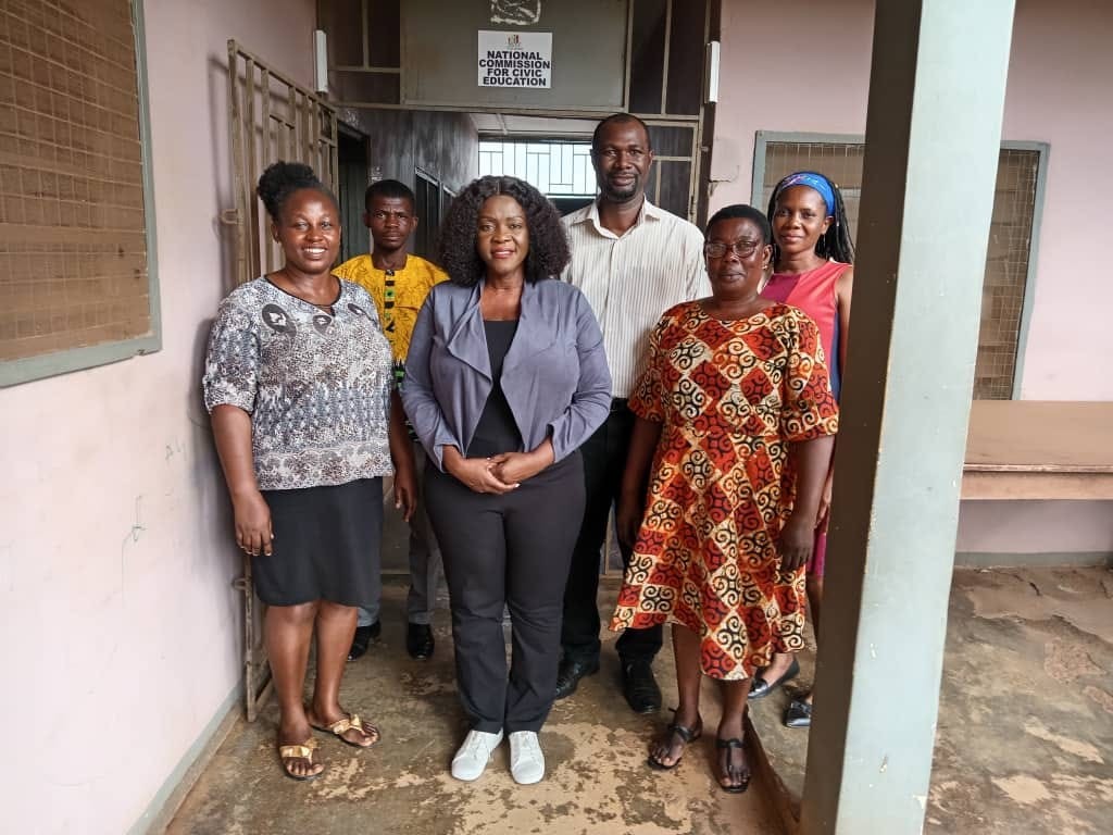 Chairperson of NCCE, Ms. Kathleen Addy has been working actively in the Bono and Bono East regions in the last few days. She paid separate visits to the two regions to monitor civic education activities. Her visit also allowed her to interact with Civic Educators in the region and receive first-hand information on some of the successes chalked up and challenges faced in delivering civic education to the people of Ghana.