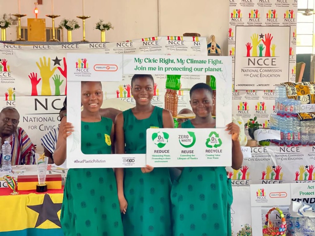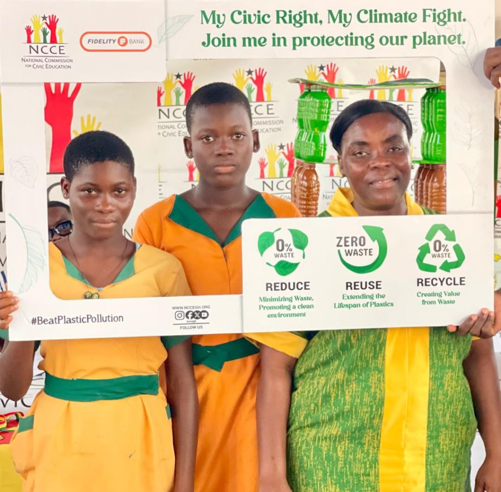 The National Commission for Civic Education (NCCE), in partnership with Fidelity Bank Ghana, has successfully held a Civic Fest Celebration and Competition in the Ho Municipality to champion a youth-led climate action under the theme, “Protecting Our Environment: Reduce, Reuse, Recycle.”