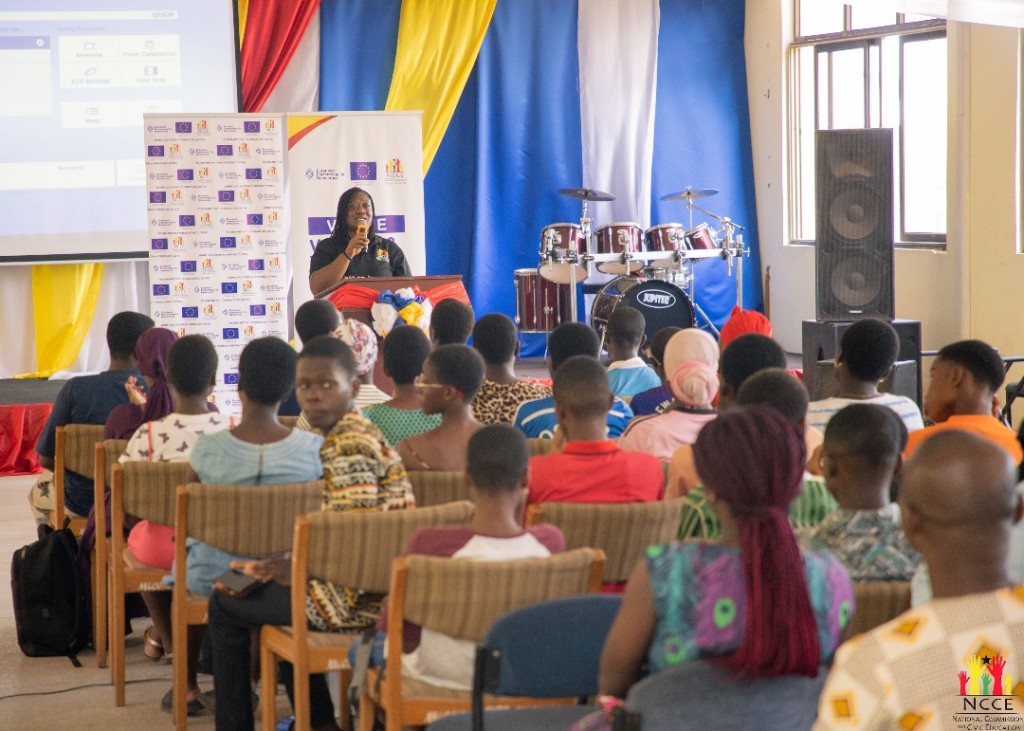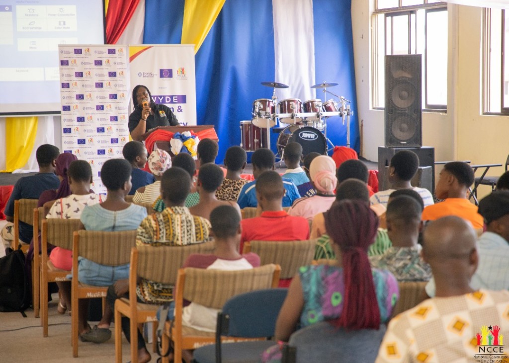 As part of the Women and Youth in Democracy (WYDE) engagements, which is powered by the NCCE and the European Partnership for Development, a civic education session was held at Methodist University for tertiary students. The Director of Communications and Corporate Affairs at the NCCE, Ms. Rita Amparbin, cautioned students against blindly forwarding information or content they receive on social media. She emphasised the dangers of misinformation and disinformation, urging participants to verify information before sharing to prevent the spread of false narratives, especially in politically sensitive periods.