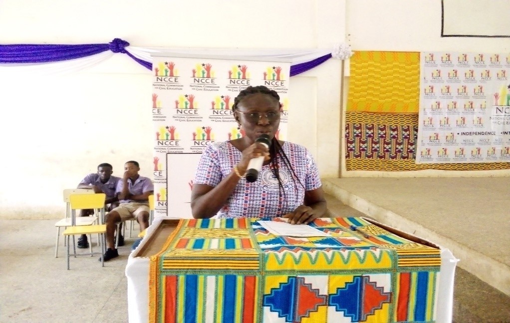 The Abuakwa North Municipal office of the National Commission for Civic Education, Eastern Region, as part of its mandate, had a talk show on the 14th of February 2024 with students of WBM Zion Senior High School – Old Tafo with the theme: “The Youth and Indecency”. The students were also taught how to administer First Aid. The purpose of the programme was to engage and sensitize the students on “Gross Indecency” which is an offence per the Criminal Code, 1960 (Act 26) section 278.