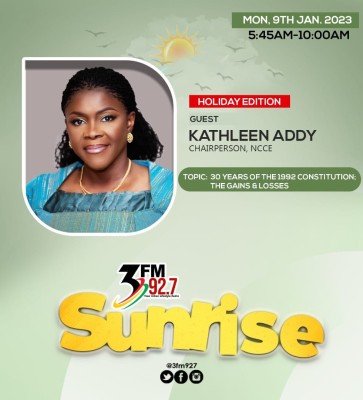 NewsMs. Kathleen Addy will be live on 3FM tomorrow. Join her as she discusses Constitution Day and 30 years of constitutional democracy.Read More By NCCE on Jan 9, 2023