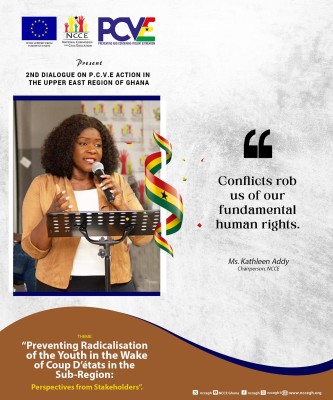 NewsExcerpts from the NCCE Chairperson's speech at the 2nd Dialogue on Preventing and Containing Violent Extremism (PCVE) action in the Upper East Region of GhanaRead More By NCCE on Sep 29, 2023